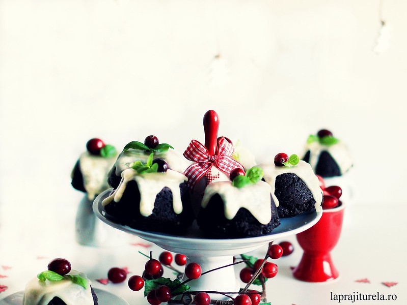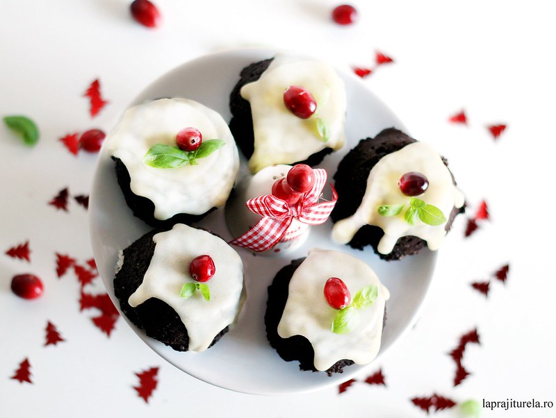 Briose cu ciocolata si faina de migdale si frosting de zahar pudra