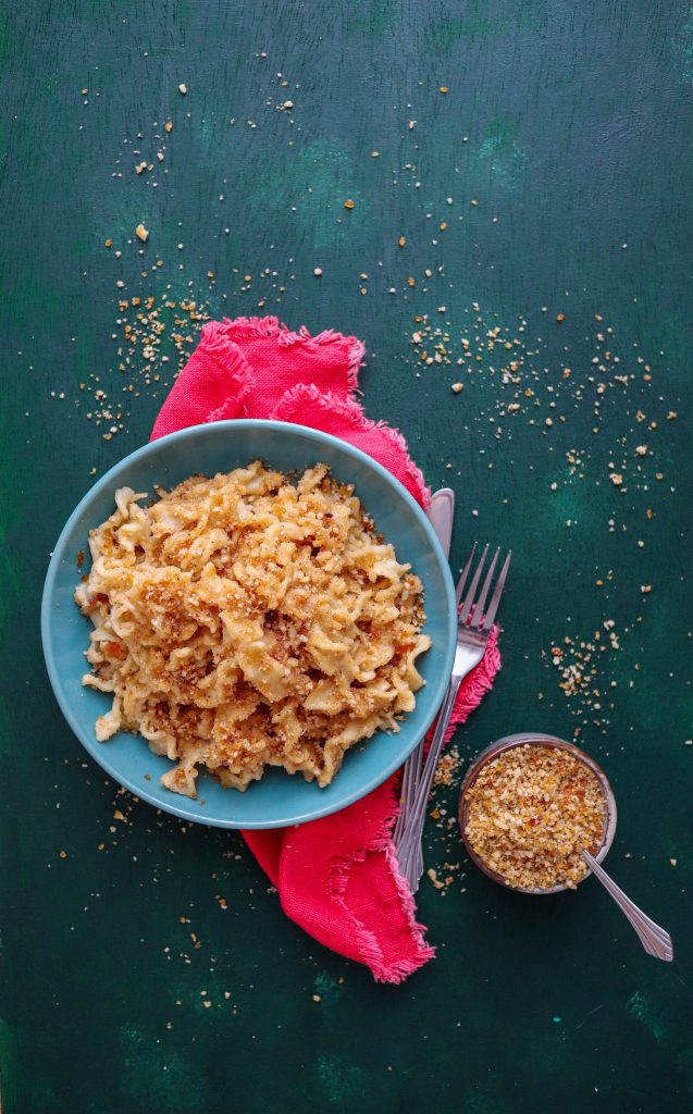 Tăiței ondulați cu griș prăjit și cranț de pralină