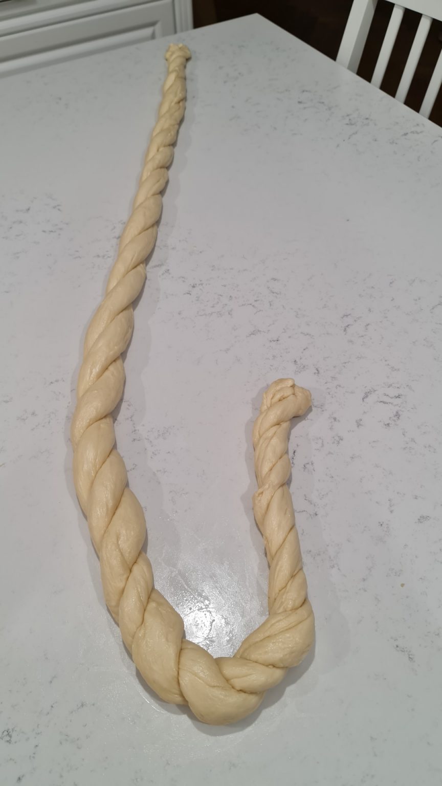 Formam, cu grija, doua suluri lungi lungi de 1-1,2 m, apoi le impletim intre ele