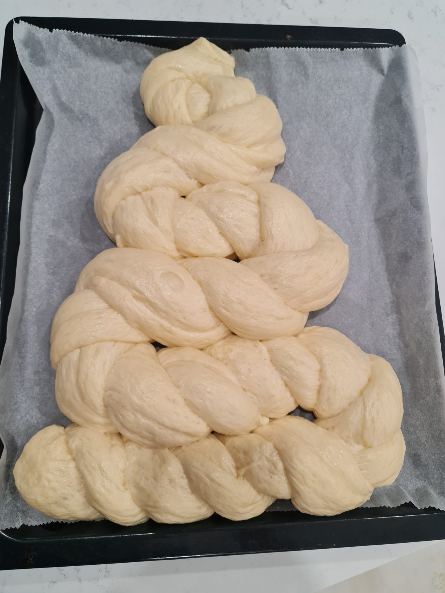 Deja devenit traditie: in fiecare an avem un bradut din aluat. Bradutul din aluat de anul acesta vine sub forma de paine dulce impletita. Aluat dulce si pufos cu mult unt gras, unsa cu un strat fin de usturoi si patrunjel