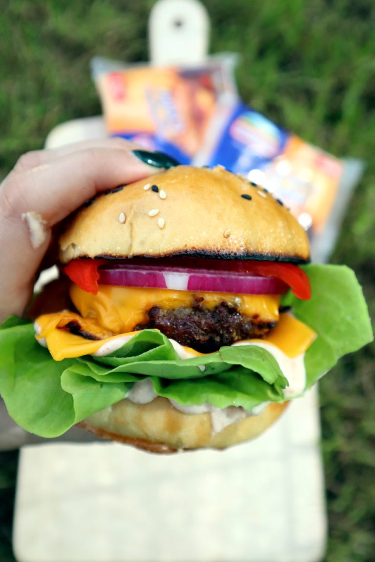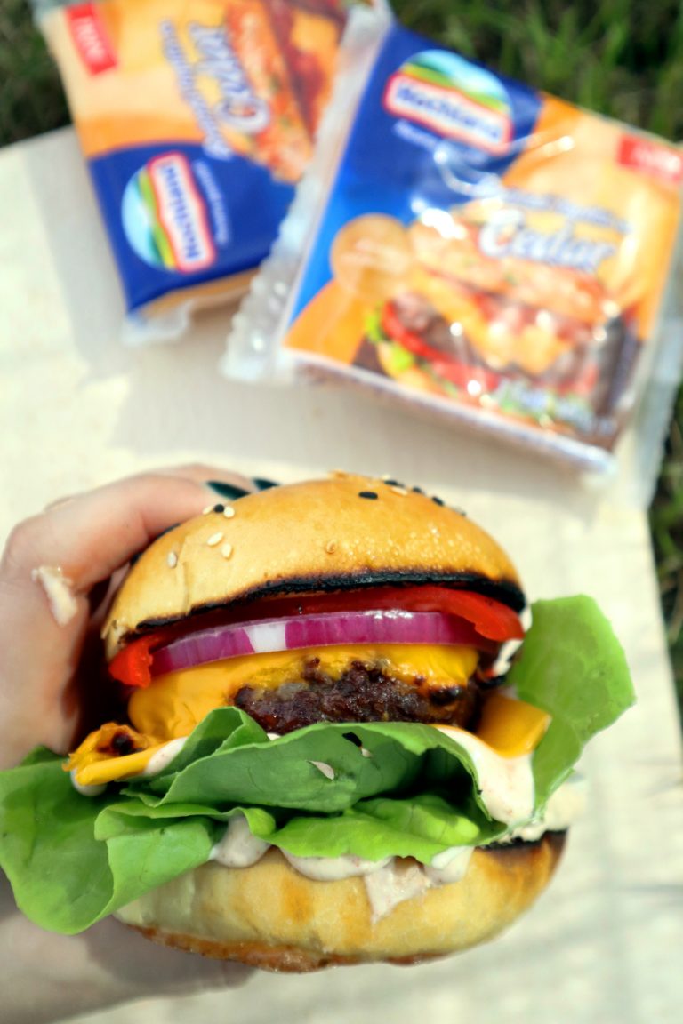 Am deja pe blog cateva retete de burgeri, insa Hochland m-a provocat sa va arat o alta reteta mai delicioasa si mai apetisanta! M-am pus pe treaba, m-am documentat si am ajuns la o reteta in care am combinat ingredientele mele preferate. Ce-mi place la acest burger este ca am reusit sa echilibrez foarte bine gusturile. Prietenii mei l-au situat in topul lor – ori sunt ei draguti, ori au iesit super buni. Una dintre prietene mi-a cerut reteta imediat a doua zi, desi i-am zis ca o voi posta si pe blog, n-a mai avut rabdare.