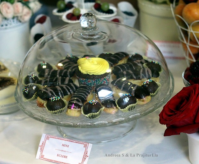 Ca prajituri mireasa si-a dorit: ciocolata de casa, macarons, mini eclere, mini cheesecakes, cupcakes si tiramisu.
