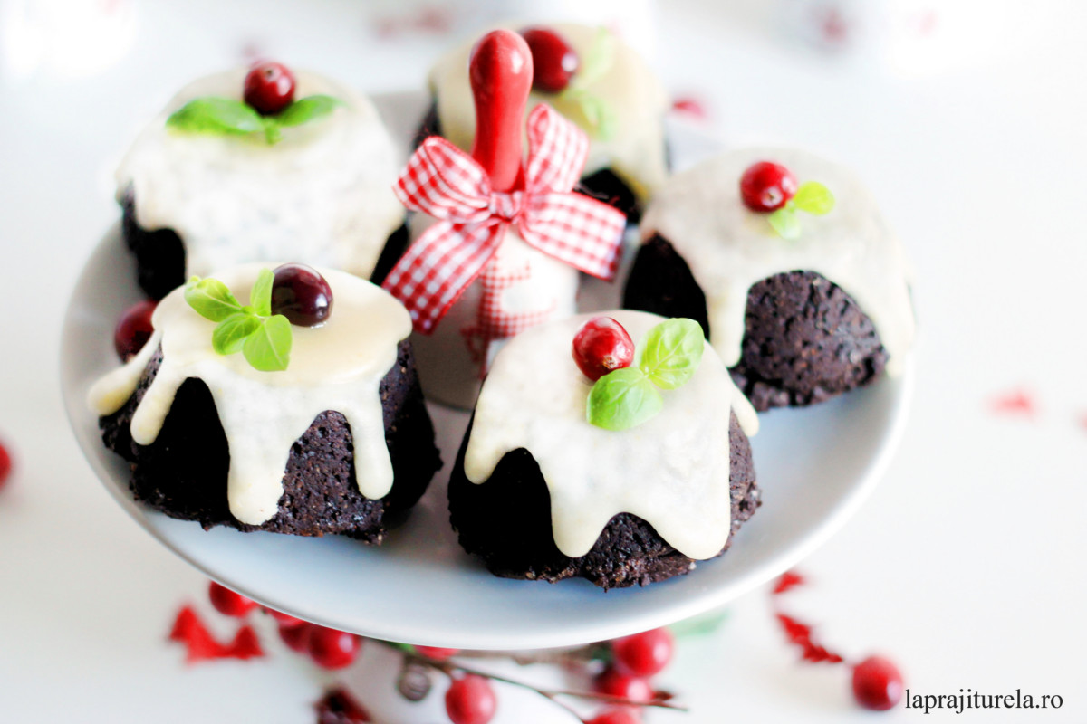 Briose cu ciocolata si faina de migdale si frosting de zahar pudra