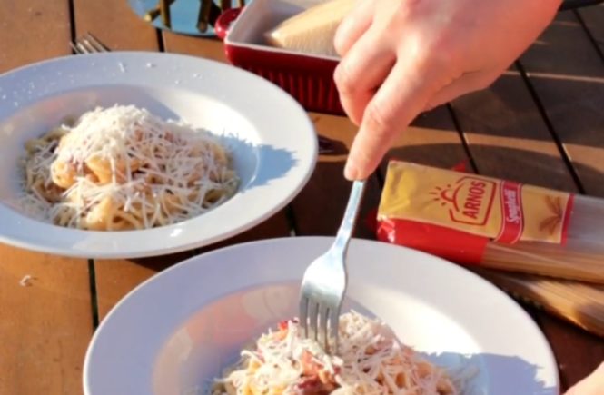 Pui cu sos de smantana, bacon, rosii uscate si spanac