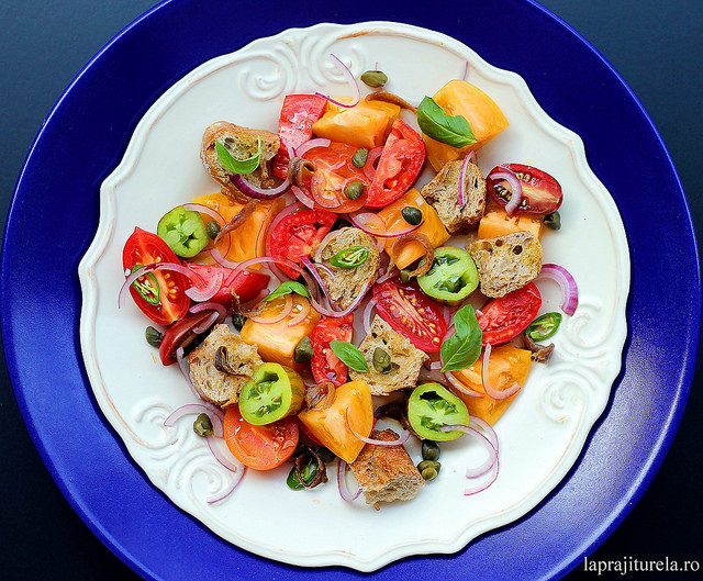 Panzanella, salata italiana de rosii cu paine