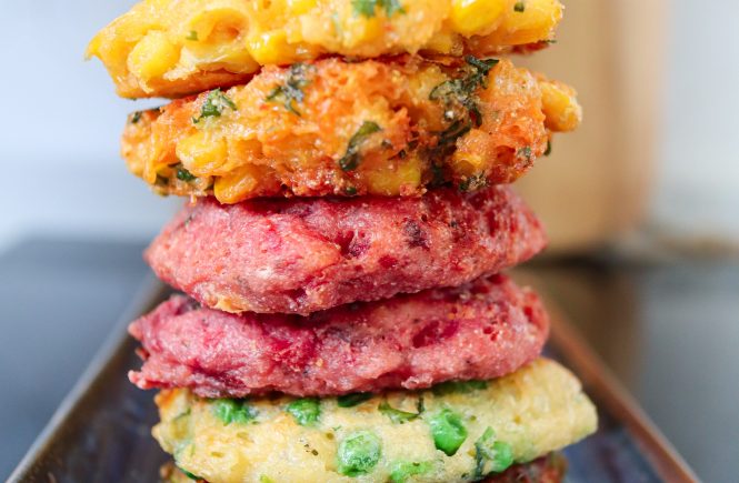 Chiftele cu porumb si cheddar, cu mazare si mozzarela, cu sfecla si branza de capra