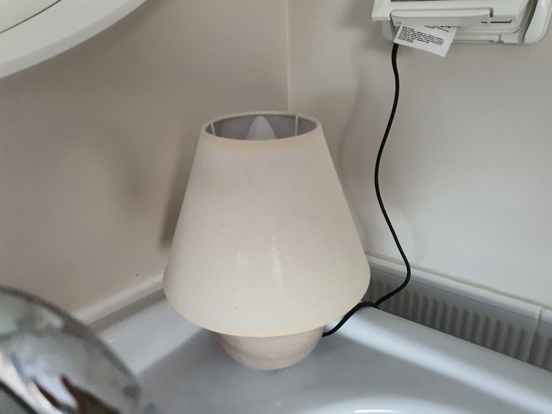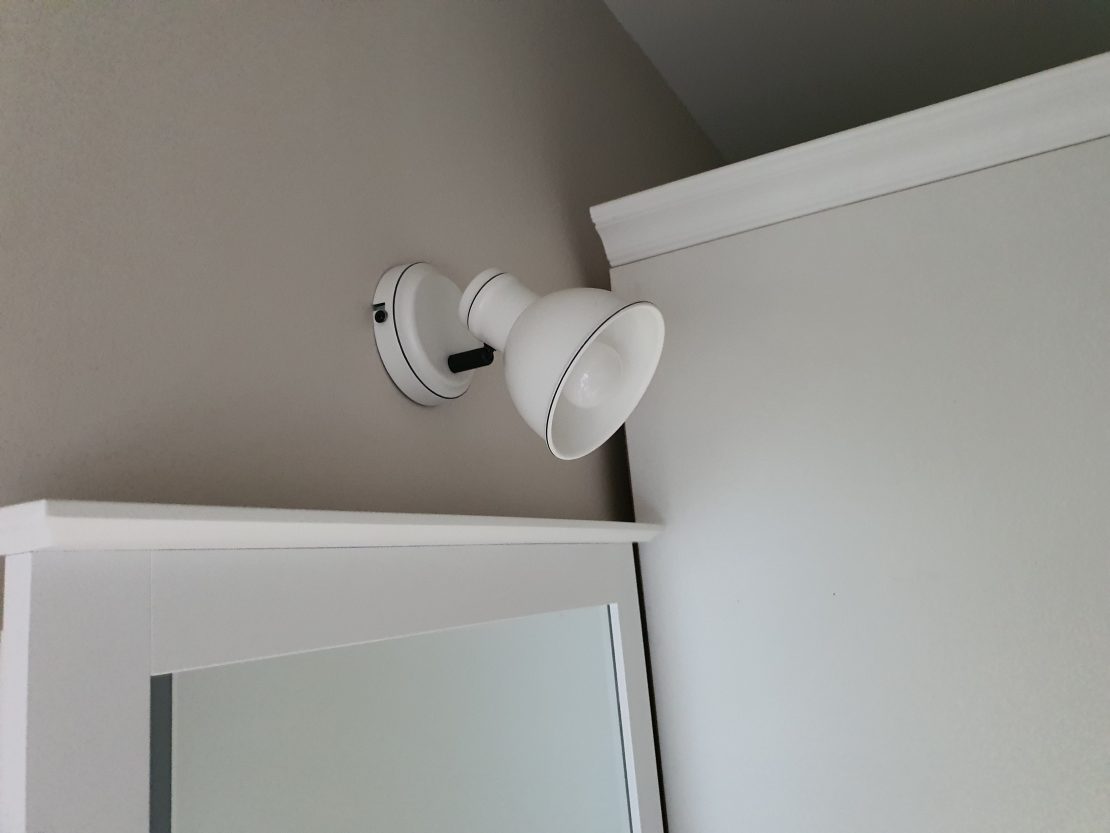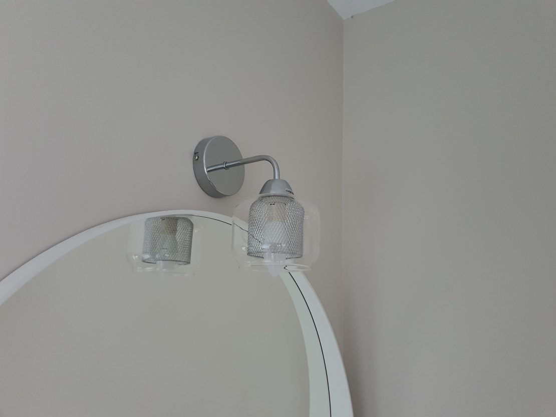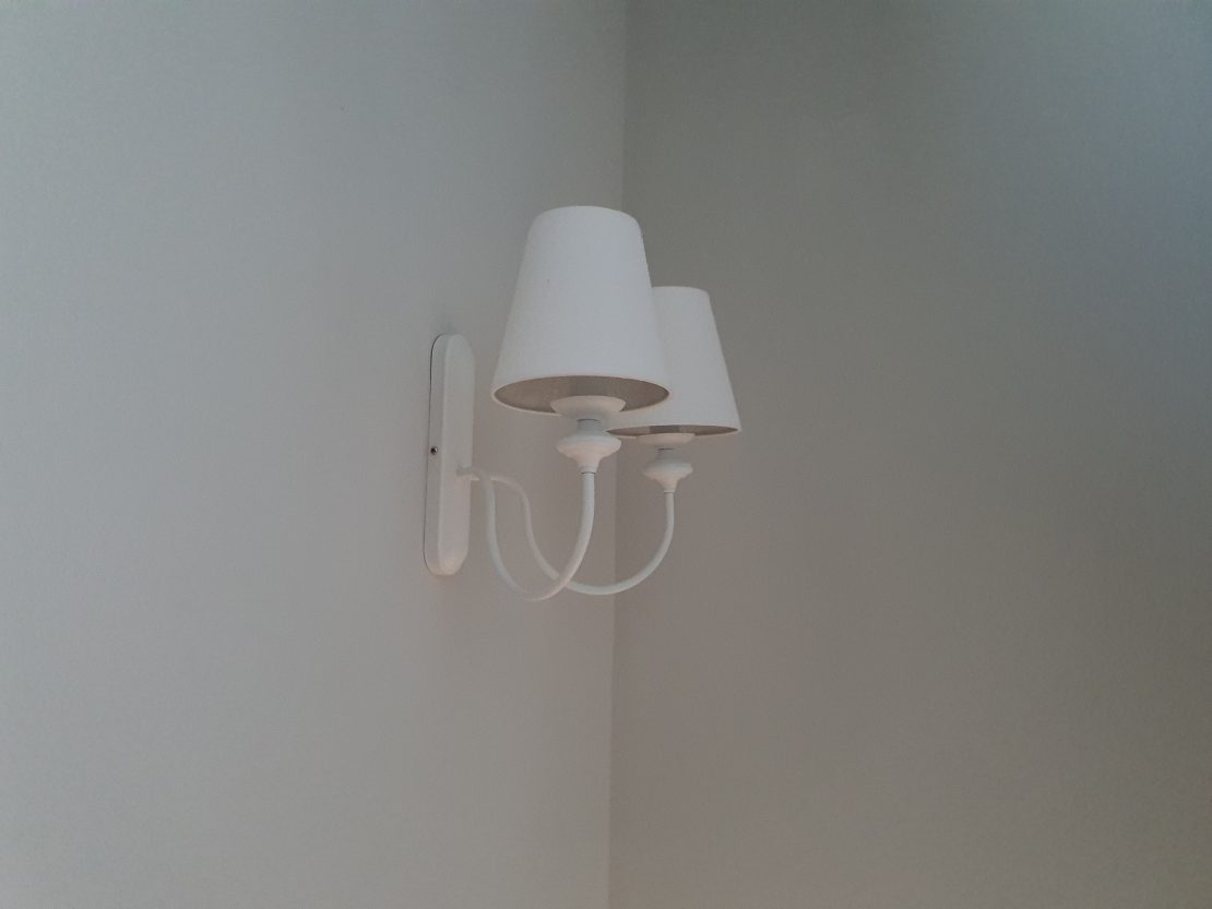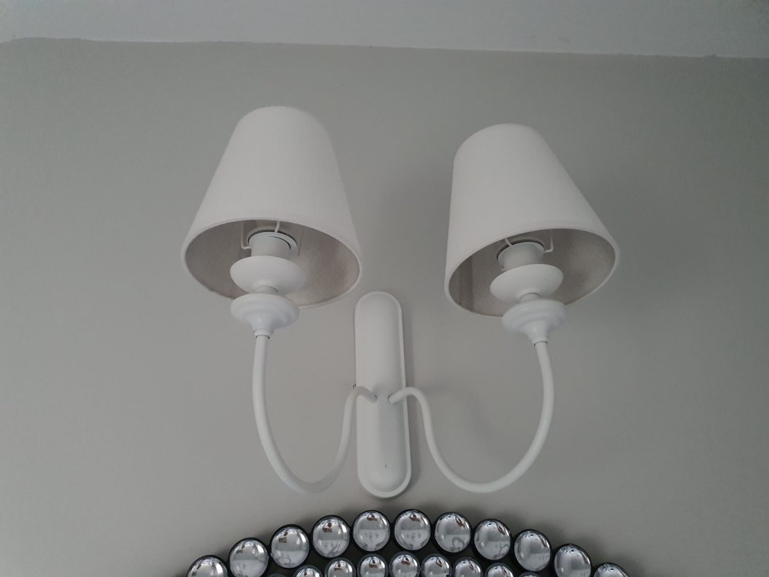 Baia de jos, fiind cea mai mare si mai eleganta am montat un set de lustra si aplice albe, elegante, cu forma conica. Becurile pentru care am optat sunt unele cu lumina rece.