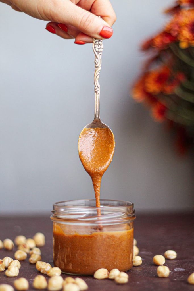 Daca tot am o jucarie noua, mini chopperul de la Kitchen Aid, am zis sa vad ce poate face. Ah, in paranteza fiind spus, va anunt ca o sa vi-l arat chiar in actiune in curand. 😉 Revenind la crema, a fost atat e usor de facut incat acum parca imi pare rau ca nu am facut-o mai devreme. Am caramelizat zahar, l-am amestecat cu alune, am mixat totul si, gata, am obtinut crema de praline.