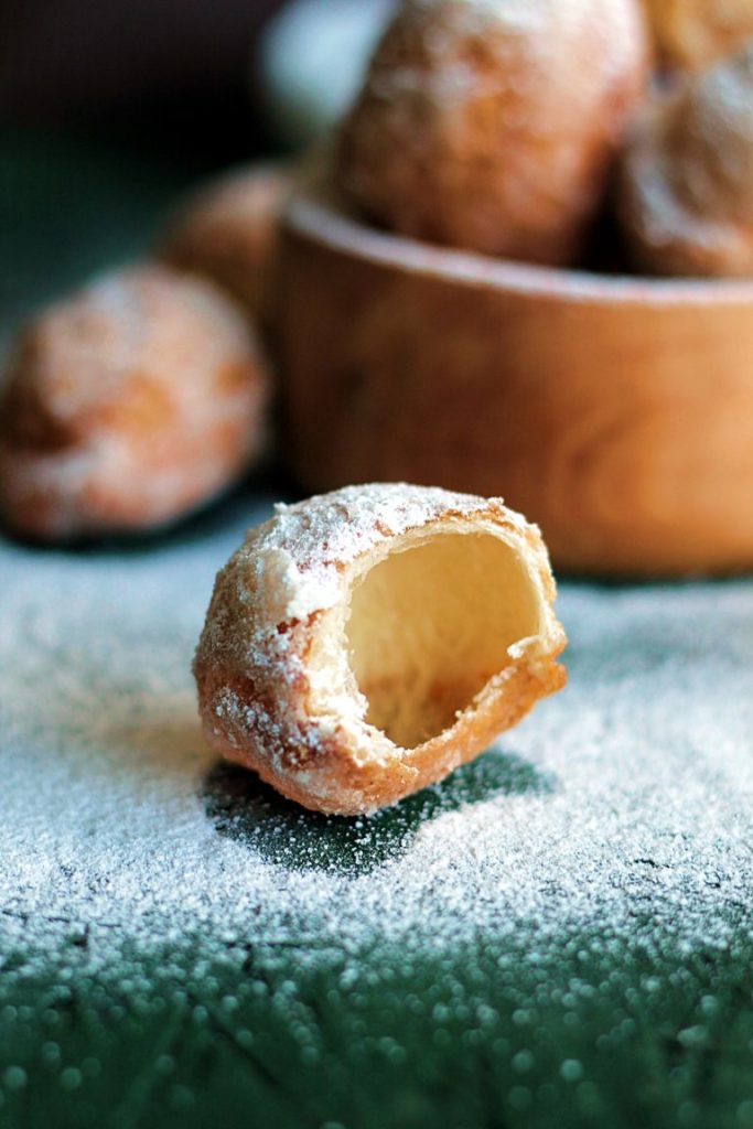 Pentru a se umfla tare si pentru a avea crusta, aluatul trebuie sa fie cat mai moale si usor, asa ca sa nu va mirati daca pe lista ingredientelor nu veti vedea ou, unt sau zahar. Varianta de aluat indulcit si mai gras este pentru gogosi pufoase, daaar, fara gaura mare in mijloc. Ati inteles voi problema mea: crocante la exterior si goale in interior. Practic niste baloane din aluat, crocante si date prin zahar.
