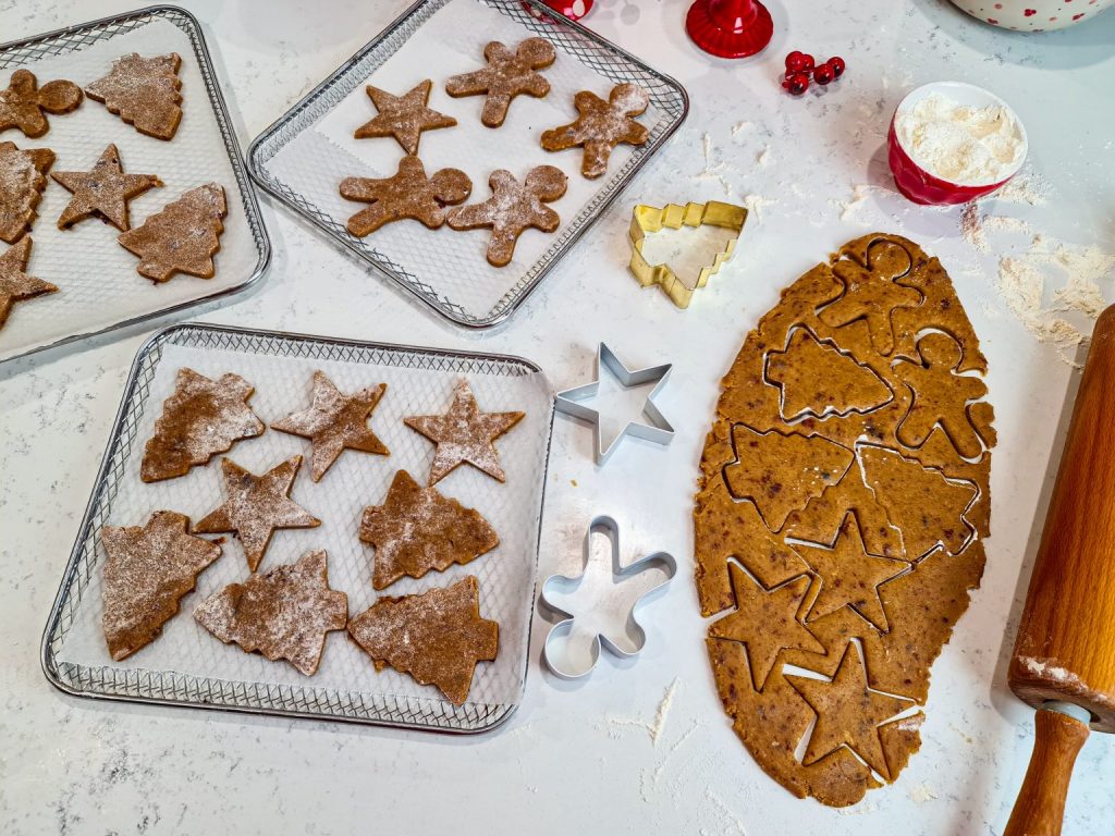Pudram blatul si aluatul cu faina,⁣ apoi decupam formele dorite cu ajutorul formelor de prajituri.
